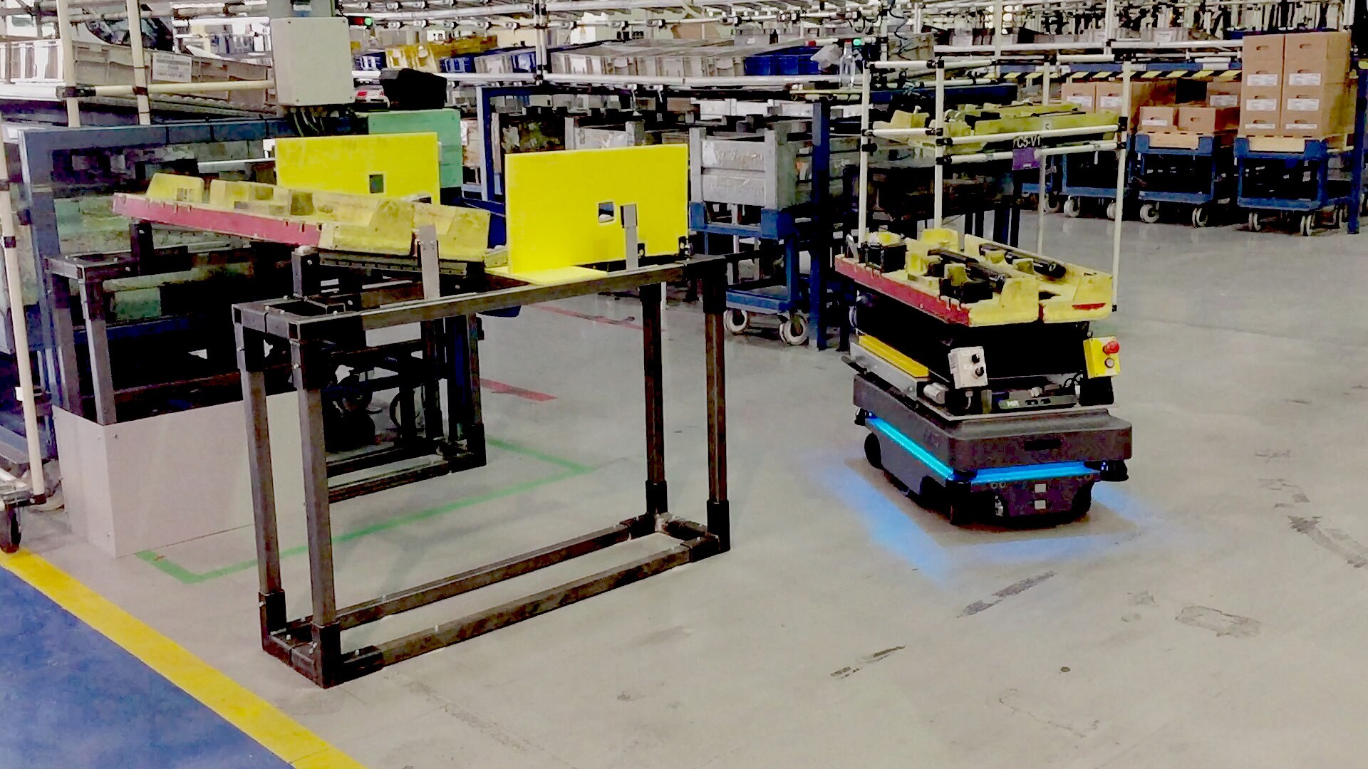 The AGV (automated guided vehicle) in action: