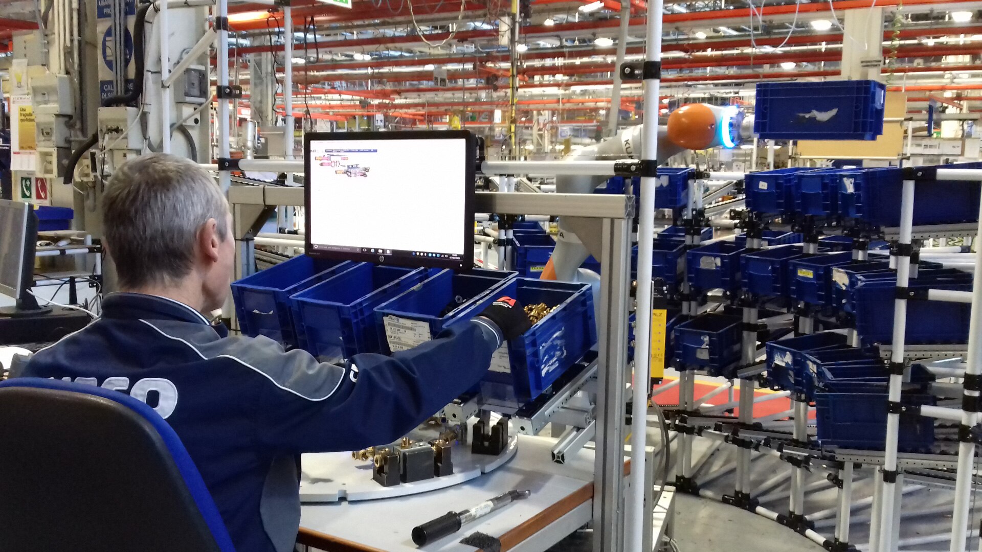 In Brescia, in northern Italy, cobots are already at work assisting in the Company's warehouses. Thanks to their long flexible arm, they can select the required items and transfer them all to an employee's work station. That individual can then assemble what is needed while comfortably seated, without constantly having to move between their desk and the warehouse to obtain the required parts, saving them time and energy.